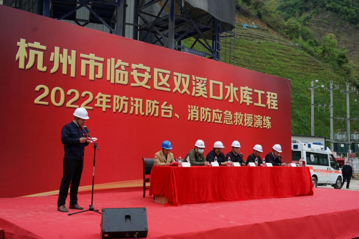 浙江省2022年汛期即将来临,为了确保工程安全度汛、提高参建人员风险防范意识和应急处置能力,4月14日上午,杭州鲁润公司组织杭州双溪口水库工程各参建单位人员开展2022年防汛防台和消防应急救援演练。杭州市水利质监中心、临安区水利水电局、清凉峰镇人民政府、双溪口水库工程指挥部领导到场观摩指导。