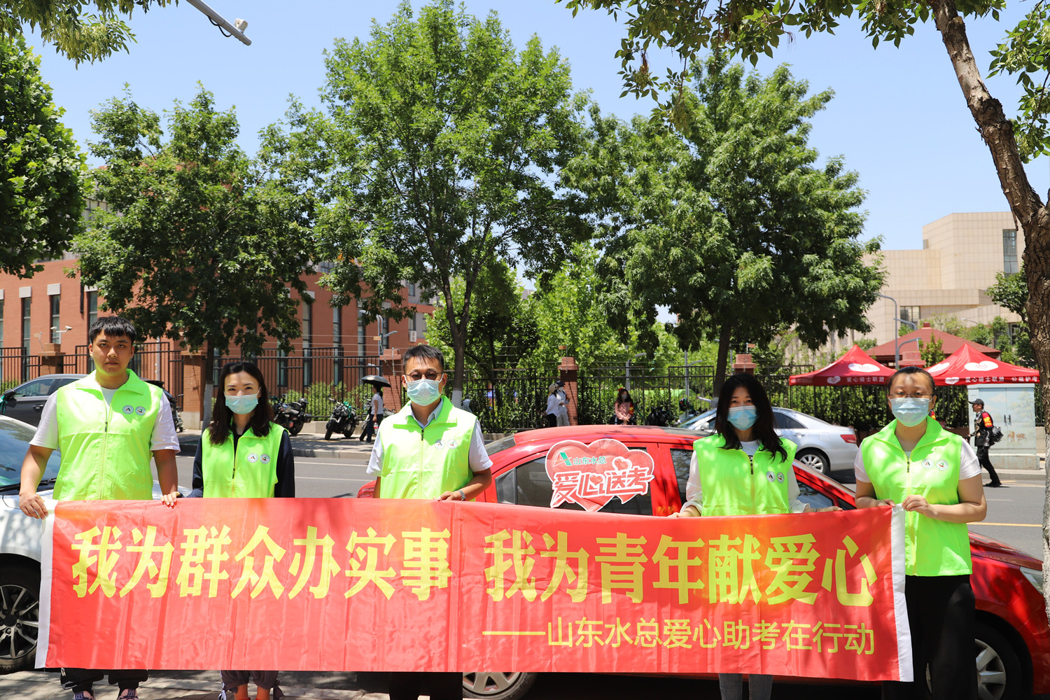 来自公司机关党支部、基础公司党支部、第一、二、三、六、七分公司党支部、公司团委及关工委成员组成的志愿服务队在历下区德润中学考点设立爱心助考服务站。服务站点为考生们准备了笔、橡皮、直尺等高考加油包,为送考家长们准备了矿泉水和休息区。为做好应急交通保障,各服务队还组建爱心送考车队、准备交通“绿丝带”,为考生的应急交通需求做了充足准备。