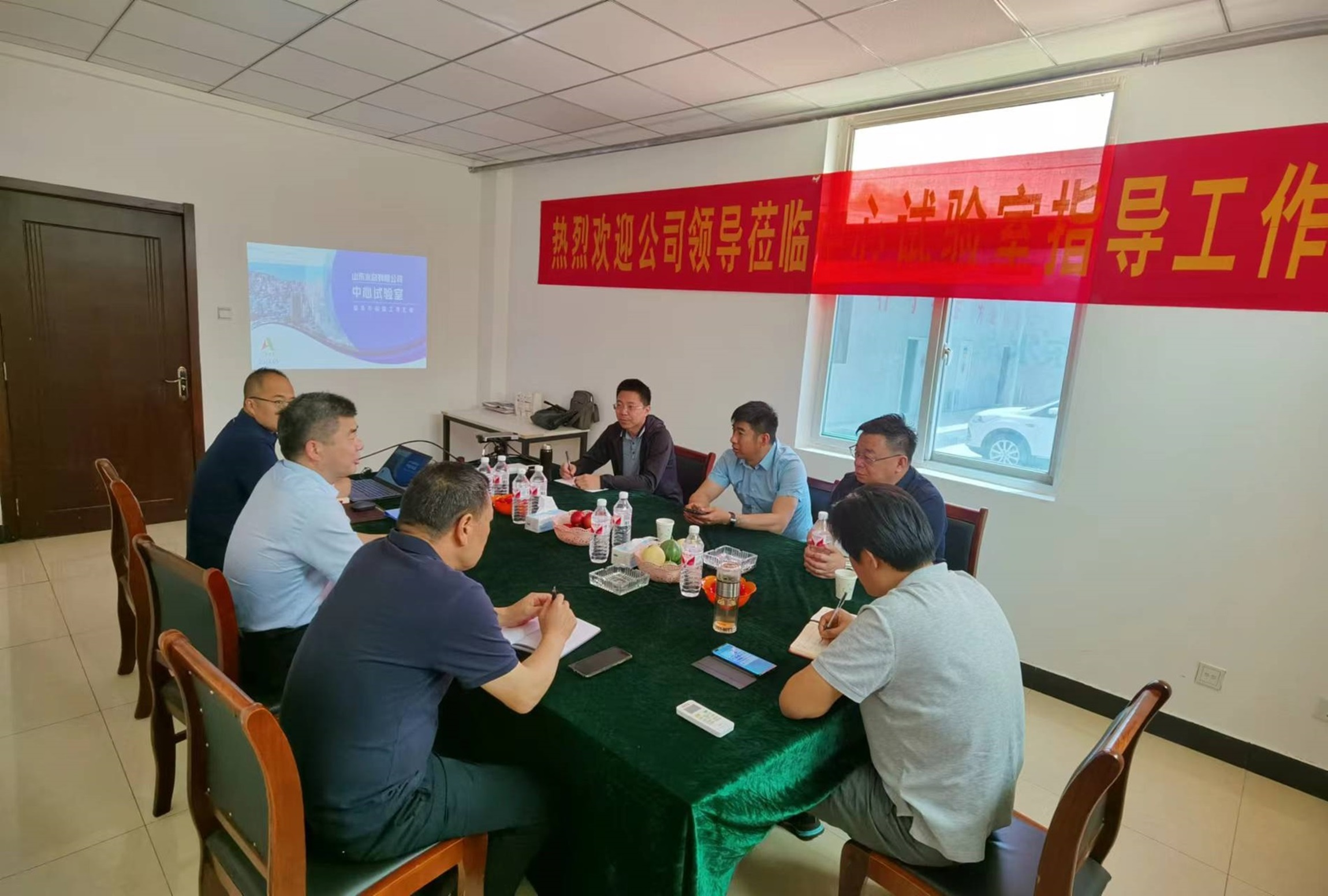 5月16日,公司党委委员、副总经理付海华与山东省水利工程局有限公司副总经理刘要军等一行到中心试验室开展调研指导、洽谈交流工作。